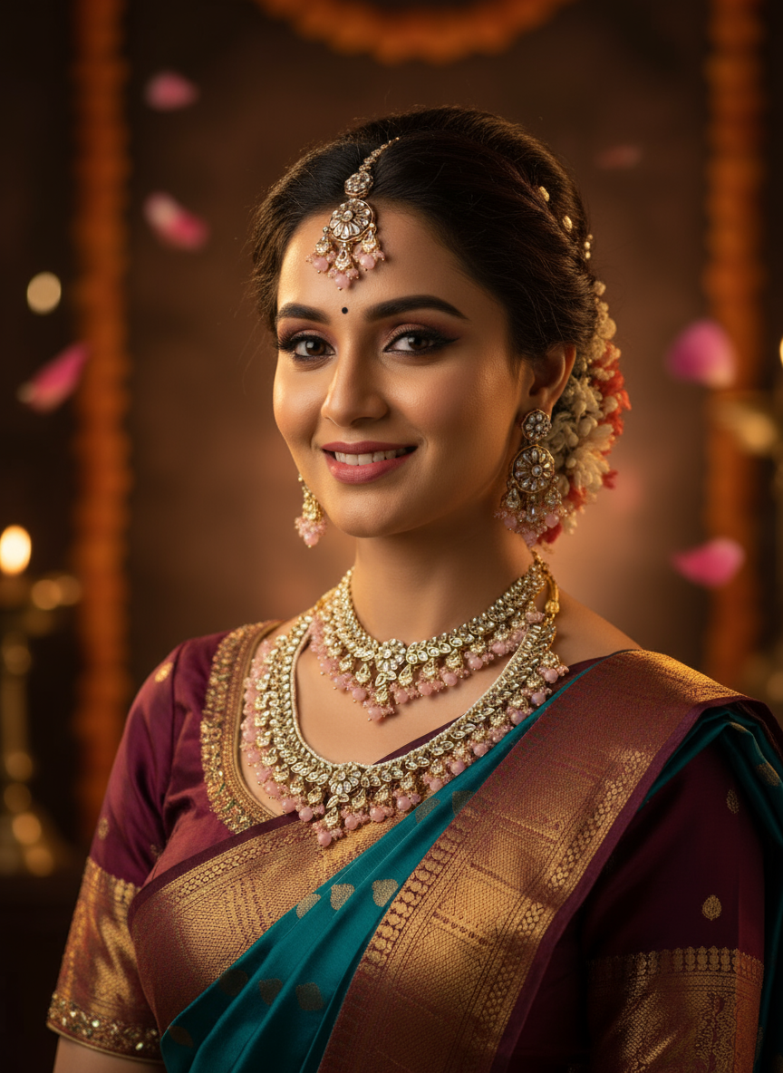 Add delicate bangles or a statement ring for a complete festive ensemble.