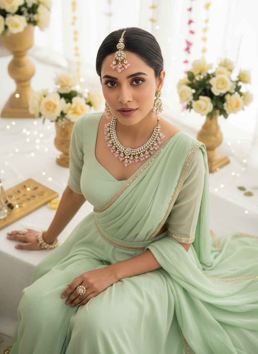 Ideal for pastel, peach, mint, or ivory outfits — sarees, lehengas, or flowy anarkalis.