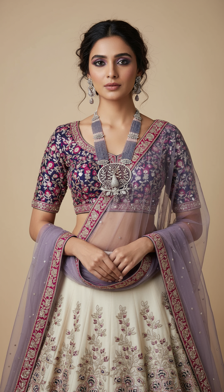 Let this majestic Rani Haar be the highlight of your ensemble. Pair it with deep jewel-toned lehengas or silk sarees for weddings and festive occasions. Opt for minimal earrings or small jhumkis to balance the grandeur of the look.
