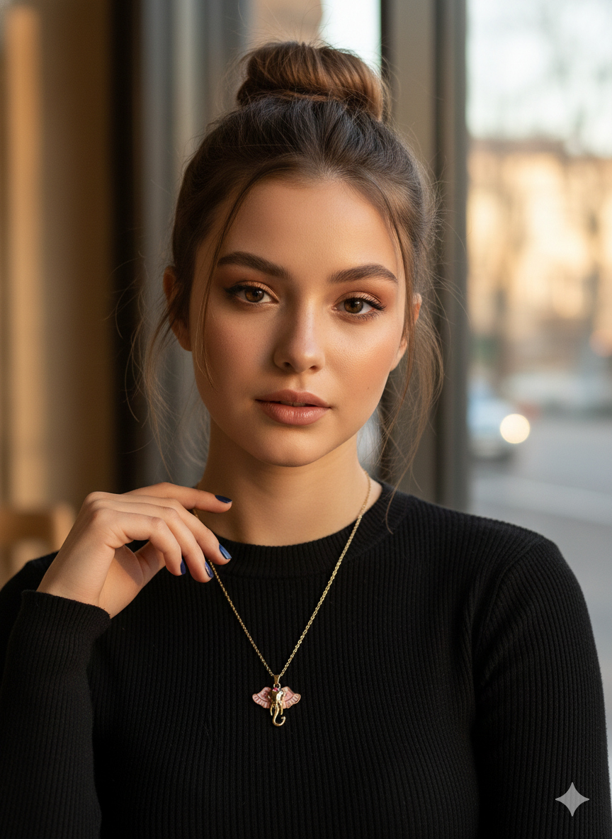 Elevate your style with divine elegance through this exquisitely crafted Ganesha pendant. Featuring Lord Ganesha adorned with serene blue enamel, this piece symbolises wisdom, protection, and new beginnings. The fine gold-tone finish enhances its sacred charm while giving it a contemporary couture touch. Perfect for daily wear or meaningful gifting, this pendant blends spirituality with sophisticated fashion.